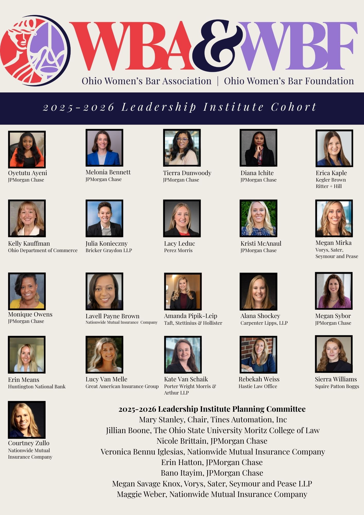 The Leadership Institute is open to women in the State of Ohio with a minimum of five (5) years’ experience practicing law. All cohort members must be active members of the Ohio Women’s Bar Association. Non-members may purchase a membership at the end of their application.